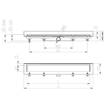 Душевой лоток AZARIO D40 Klasik 650 мм пристенный, боковой слив, пластиковый, с черной решеткой (AZ-CH 650 KC2)