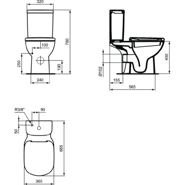Унитаз-компакт Ideal Standard Esedra напольный, глубокий смыв, без сидения и крышки, белый (T283401)