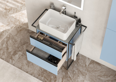 Тумба под раковину Roca DOMI 600 мм, подвесная, 2 ящика, синий матовый (Z.RU93.0.786.7)