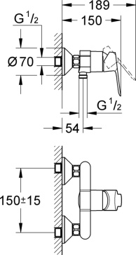 Смеситель для душа GROHE BauEdge, настенный монтаж, хром (23636000)