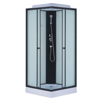 Душевая кабина Loranto 880x880x2040 без крыши, левосторонняя, белое заднее стекло, поддон 14 см, прозрачное стекло 4 мм, профиль черный (CS-3008TM/W-90L)