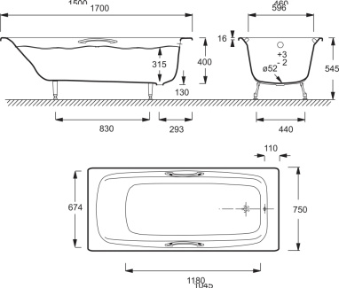 Ванна акриловая Standard i.life 1700х700 пристенная, встраиваемая (T475901)