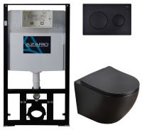 Сет AZARIO инсталляция с панелью смыва + унитаз Grado с сиденьем микролифт, чёрный матовый (AZ-8010-1000+AZ-8200-0013+AZ-0046-MB SP)