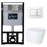 Сет AZARIO NEW Инсталляция для подвесного унитаза 3/6л +подвесной унитаз Azario Navio безободковый в комплекте с быстросъемным сиденьем микролифт (AZ-501A+AZ-0074)
