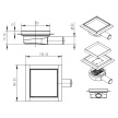 Трап для душа AZARIO 150х150 металлический, поворотный сифон 360°, решетка "под плитку", горизонтальный выпуск (AZZ3TILE150)