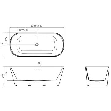 Ванна акриловая Creo Ceramique Reflejo 1700х750х585 отдельностоящая, в комплекте с сифоном и металлической рамой (AZ-8697-1.7)