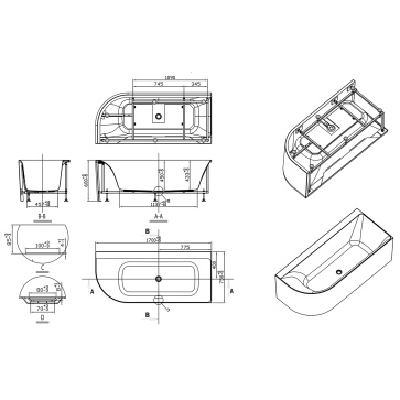 Ванна акриловая Creo Ceramique Mist B 1700x750x600 пристенная, правосторонняя, в комплекте с сифоном и металлической рамой (AZ-8649-B-1.7)